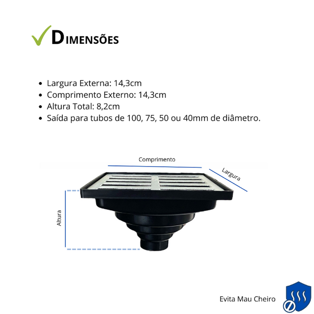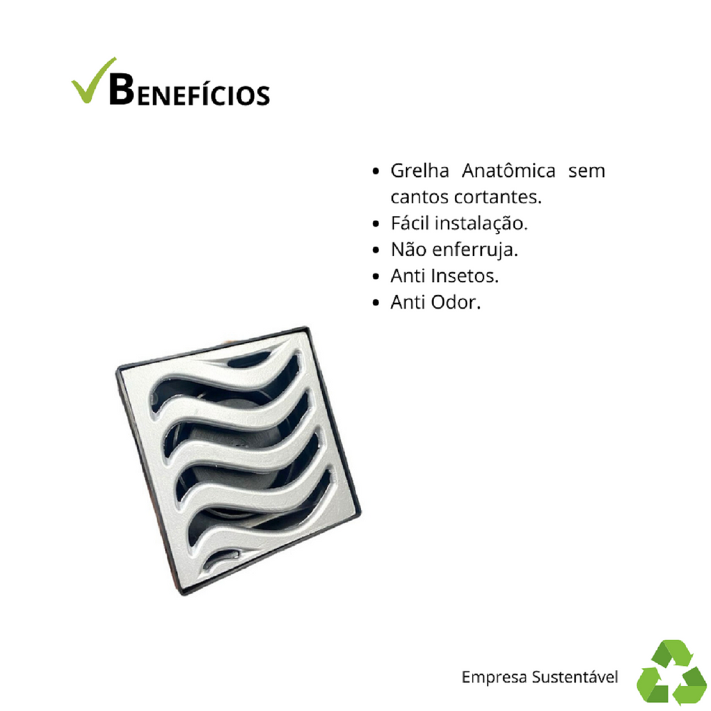 Conta Dispositivo com Dupla Ação, evita maus cheiros e entrada de insetos indesejados pela tubulação, fácil de limpar e efetuar a manutenção do seu ralo.
