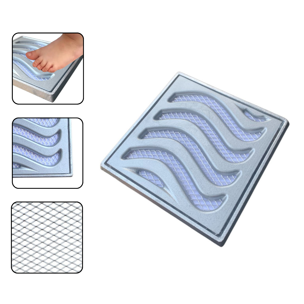 - Composição: Aro de fixação + grelha pluvial em alumínio