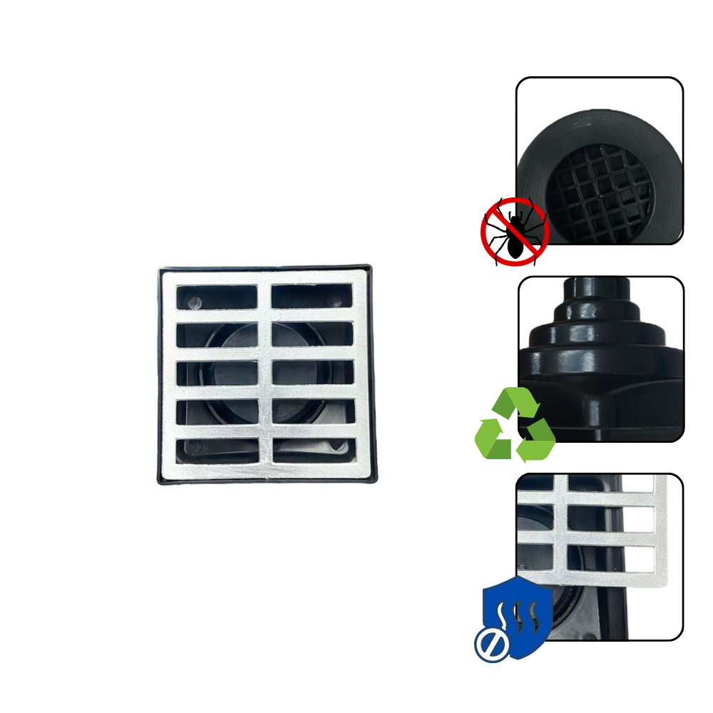 Conta Dispositivo com Dupla Ação, evita maus cheiros e entrada de insetos indesejados pela tubulação, fácil de limpar e efetuar a manutenção do seu ralo.