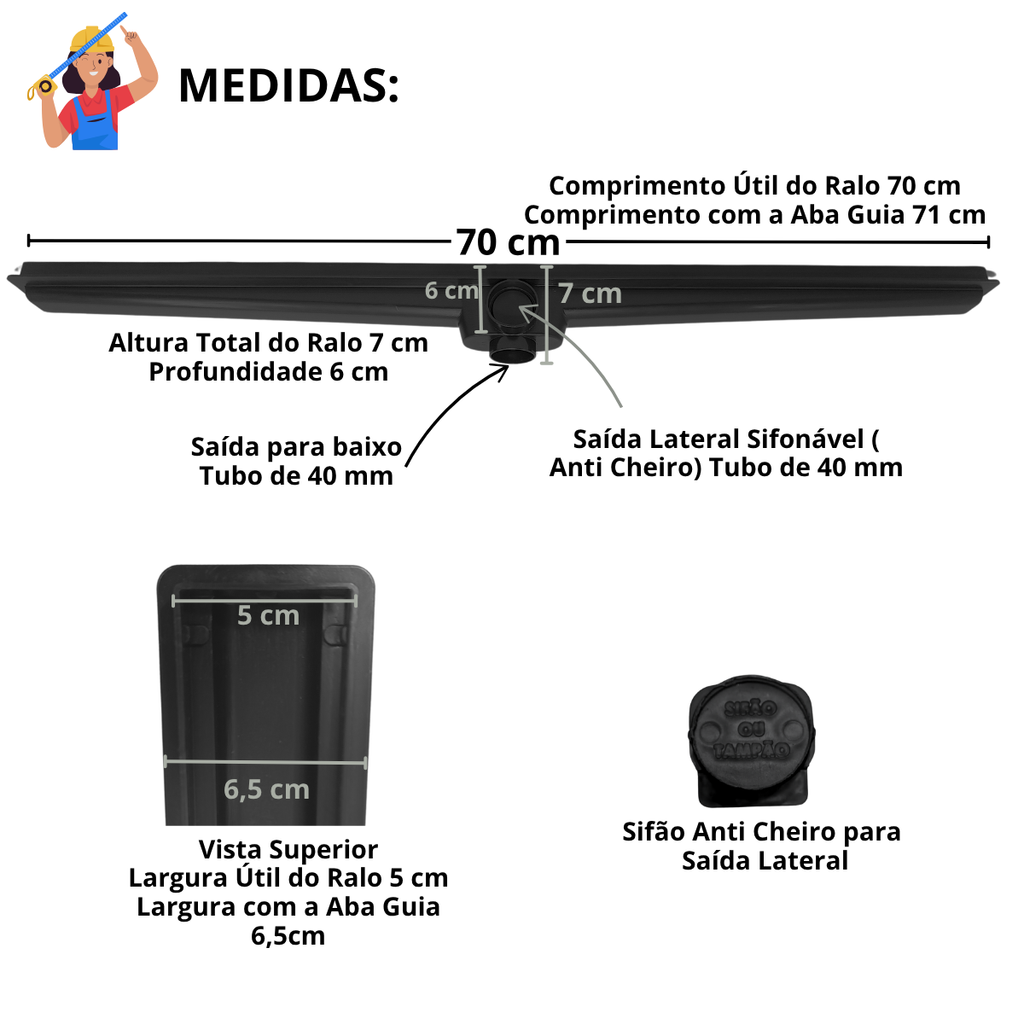- Permite controlar a passagem de água e vedar completamente o ralo quando necessário.